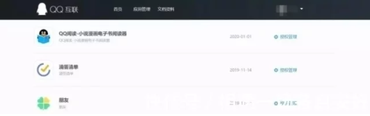2、点击头像下拉,找到“授权管理”,即可查看到QQ曾经授权登陆、注册的平台。