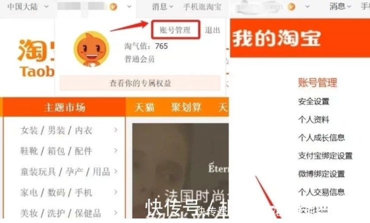 打开网页版淘宝,将鼠标移至头像边,在弹出的选项中点击【账号管理】-【应用授权】中就可以查看。
